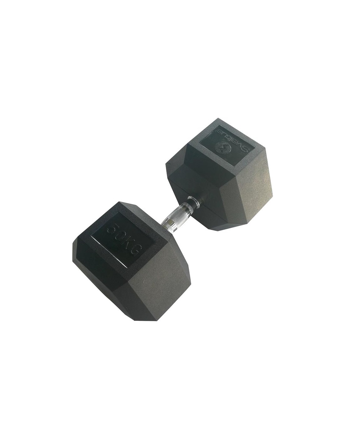 Las Mancuerna Hexagonal Sveltus 1237 con 50kg de peso, están fabricadas en acero recubiertas de goma de alta calidad y peso grabado en relieve en su superficie.