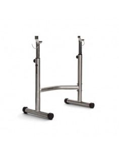 Rack ajustable para barra con estructura robusta de tubos de acero.